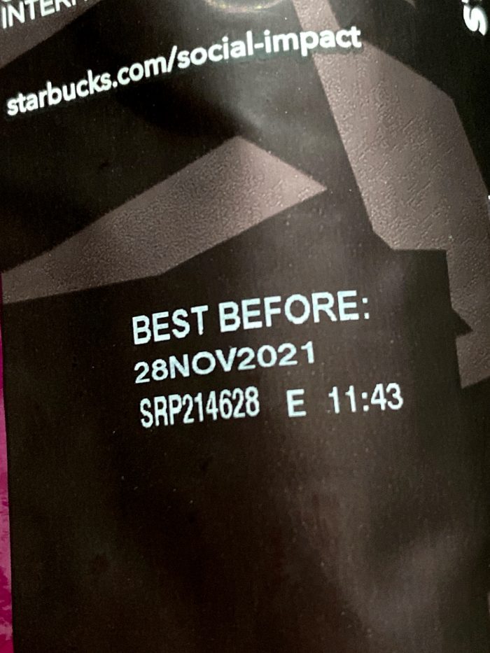 スターバックスの豆の賞味期限は焙煎した日から34週間とされていて、開封後は7日で、挽いたらその日のうちに飲み切ってねというのが、彼らが奨励するオフィシャルな美味しく飲める期限です。
